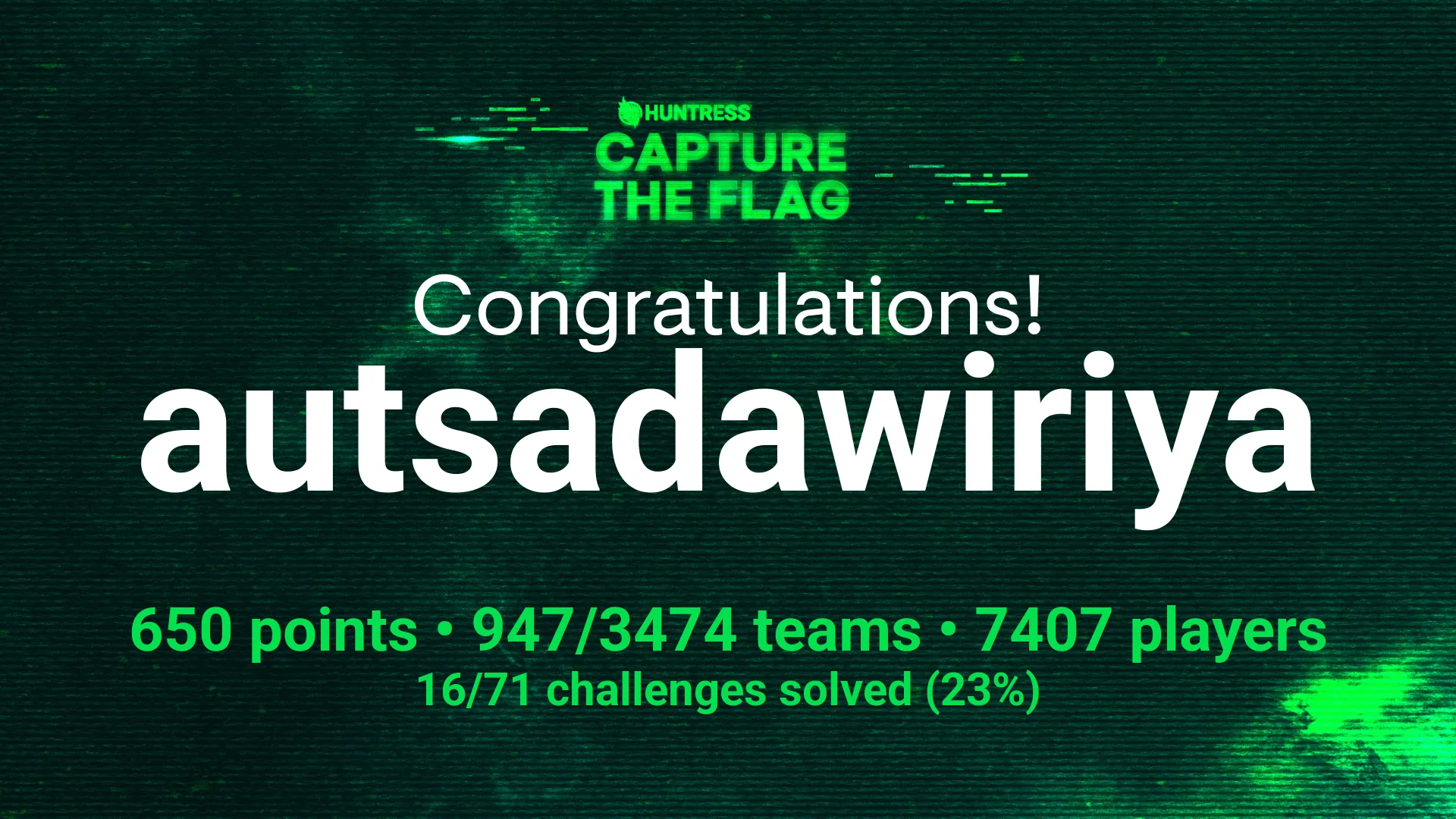 โดยแข่งขันผ่านทางเว็บไซต์ https://huntress.ctf.games/